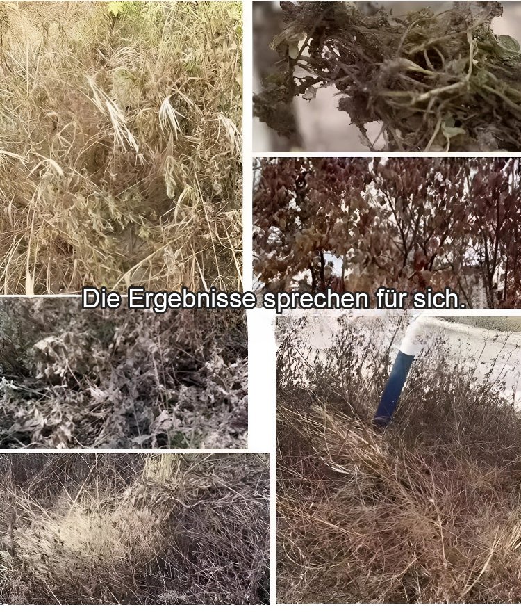 Gründliches Unkrautentfernen, schadet dem Boden nicht, eine Flasche reicht für 3-5 Morgen Land.